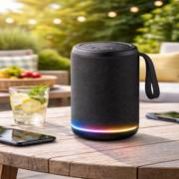 Portable Bluetooth speaker with powerful sound, sleek design, and long battery life—perfect for music on the go, indoors or outdoors.